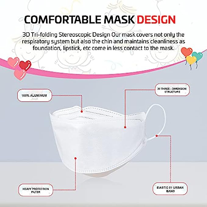 • ✅ BEST KIDS PROTECTION – This Extra Small KF94 disposable face mask is made with high quality MB fabric that is effective. Made with a triple-layered electrostatic filtration system, this product will filter at least 94% of PM2.5 to protect the wearer from exposure to harmful dust. This children's mask is very effective in protecting from dust, air pollution, and more. Protect your children’s health with these disposable face masks for kids.