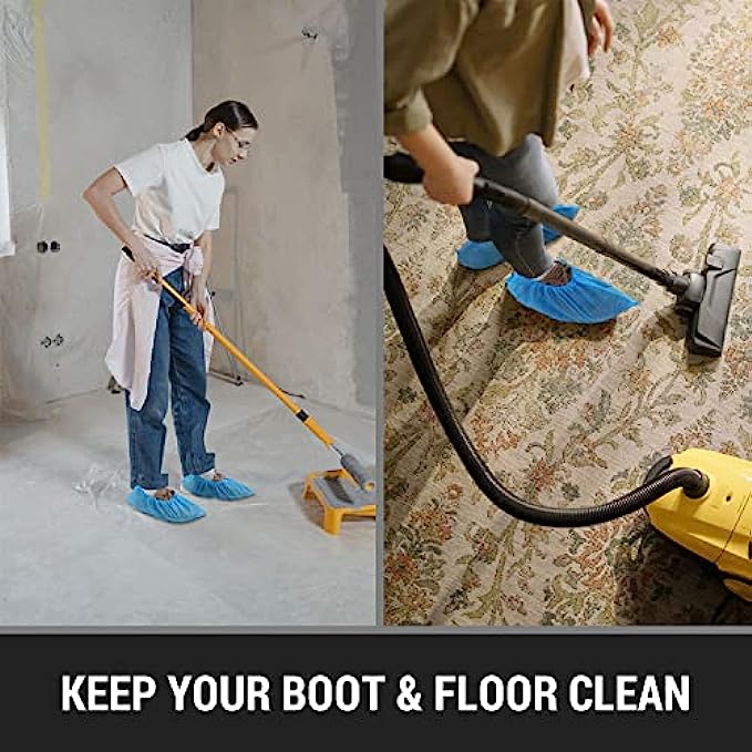 ✅ HIGH QUALITY MACHINE MADE: We use two options to make shoe covers more durable and snug: Machine made with thicker 35 gsm non-woven material, and strengthening the boot opening with double durable rubber band. They can better suitable for working long hours, such as cleaning or construction.