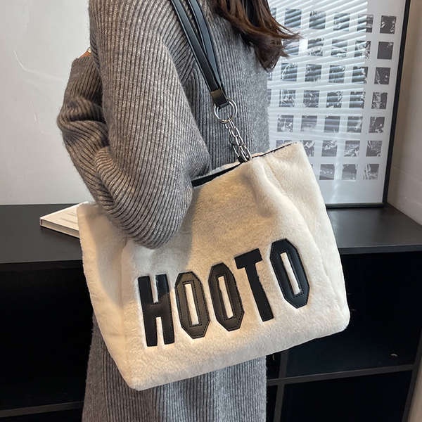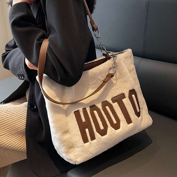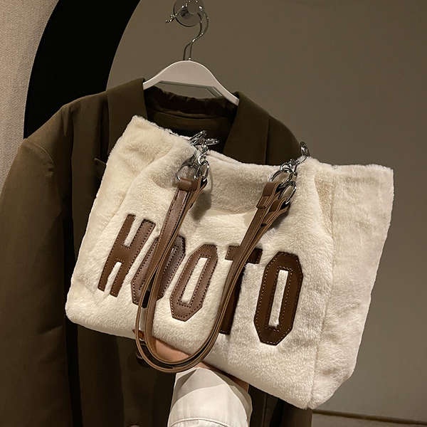 ♖High-grade large capacity fur bag for women 2022 new versatile letter plush one-shoulder tote bag for autumn and winter