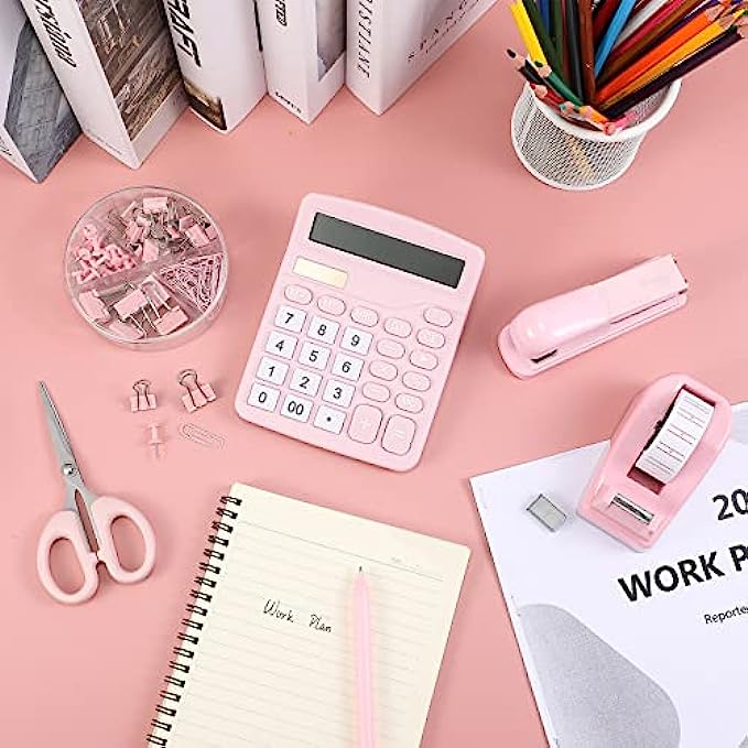 Value Pack: you can get 1 stapler, 1 desktop tape dispenser, 1 ballpoint pen, 1 box of binder clips and paper clips, 1 scissor and 1 calculator, such a complete office supplies combination is enough to meet your study or office needs
