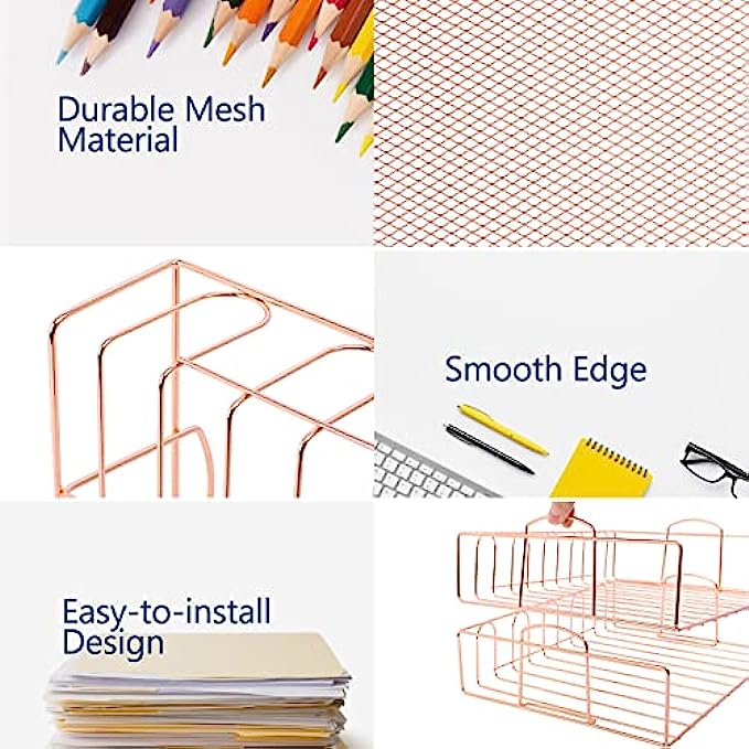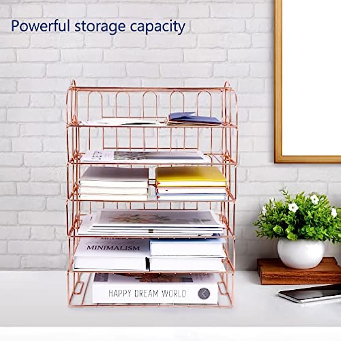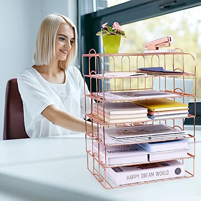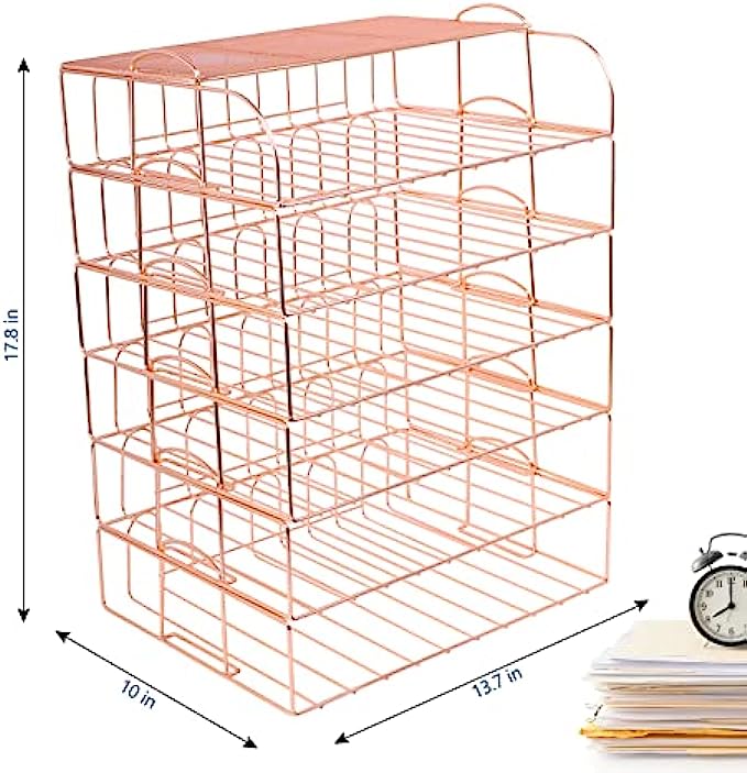 • 【6 Stackable Trays】-This rose gold desk organizer includes 6 file trays and one upper display shelf. Use this desk file organizer as individual trays or stack them to save more space. You can use them for one person or separate them for multiple people.