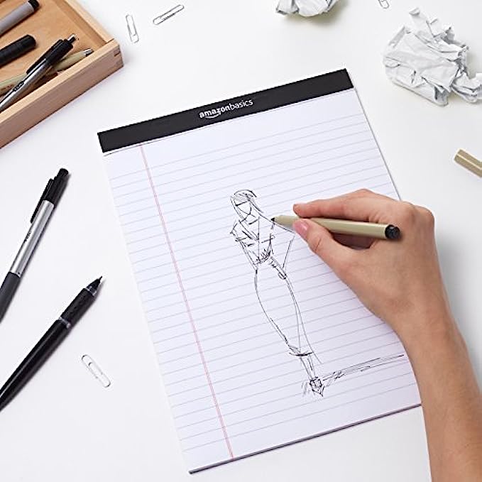 Amazon Basics 50-Sheet Legal Note Pad, Wide Ruled, 8.5 x 11.75 Inches, White - Pack of 12