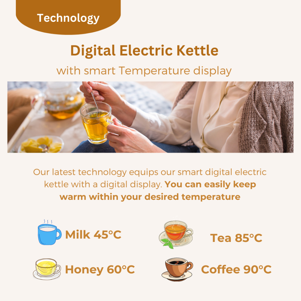 Arden Kitchen 1.7L Digitial Electric Kettle Real-Time Temperatre Screen Display