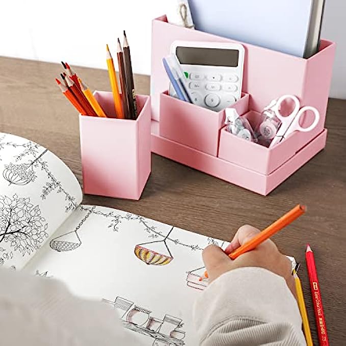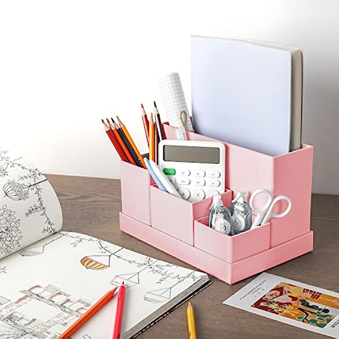 ? MULTI FUNCTIONAL DESK STORAGE : The desk organizer will keep the stuff you need at hand while staying out of your way. You can place the desk organizer in your office, home, school, dressing desk for pens , notebooks, remote control, scissors, brushes, cosmetics and all in one design.