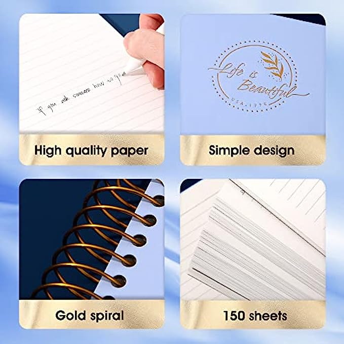Hardcover Spiral Notebook 150 Sheets 3 Subject Large College Ruled Notebook for Office Meeting Notebook College Essentials Composition Notebook Wire Bound Journal School Supplies, Blue