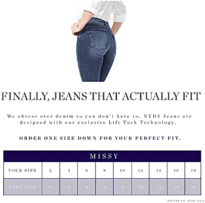 70% Cotton, 13% Polyester, 10% Lyocell, 5% Elastomultiester, 2% Elastane Imported No closure closure Machine Wash BOOTCUT JEANS FOR WOMEN: Not too long, not too short, the NYDJ Barbara Bootcut Jeans fit just right. The traditional bootcut fit gives you a flattering legs-for-days look and makes these jeans an effortless closet staple. EXCLUSIVE LIFT TUCK TECHNOLOGY: This unique technology uses a proprietary slimming panel with a patented crisscross design to shape and support your curves for an always-sleek silhouette. It will lift, slim, and flatten in the front for a flattering fit. MEASUREMENTS: Inseam runs 32 inches, front rise is 9.75 inches, with a leg opening of 17.5 inches. Due to the Lift Tuck Technology, select one size down from what you normally wear for the best fit.