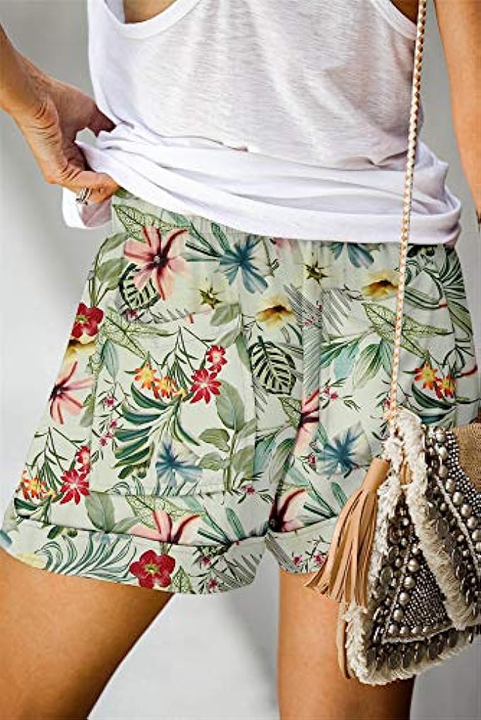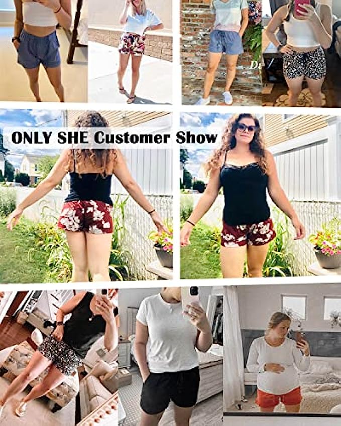 • Women's Shorts:Solid: 35%Cotton+60%Polyester,Printed Shorts: 95%Polyester+5%Spandex,Lightweight fabric with a cozy elastic drawstring waist, keeps you soft all day.