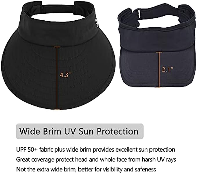 65% Cotton, 35% Polyester Imported 2 in 1 Zip-Off Removable Womens Sun Hat - This sun hat for women with a zip off crown for optional visor, so you can wear it either as a sun hat to cover your head or simply as a wide brim sun visor hat UPF 50+ Sun Protection Hat - This golf hat for women provides extra UV protection from sun rays by covering your eyes & face with its' wide brim, helps you stay cool as you enjoy your outdoor activities in the sun Easy to carry - The sun visor is lightweight and foldable, which makes it a good companion when travelling. And the breathable fabric, keep you feel cool outside in hot summer days Adjustable, one size for most - Womens beach hat can be adjusted with its' back closure, the head circumference is 21.6'', adjustable 6-7cm from up and down. The height of fishing hat is 3.5'' and the brim width is 4.3'' Go for traveling - This sun protection hat can be used for casual daily wear or outdoor, ideal for golf, beach, camping, hiking, tourism, jogging, running, walking or other sports and activities. It also makes a great gift for friends and family